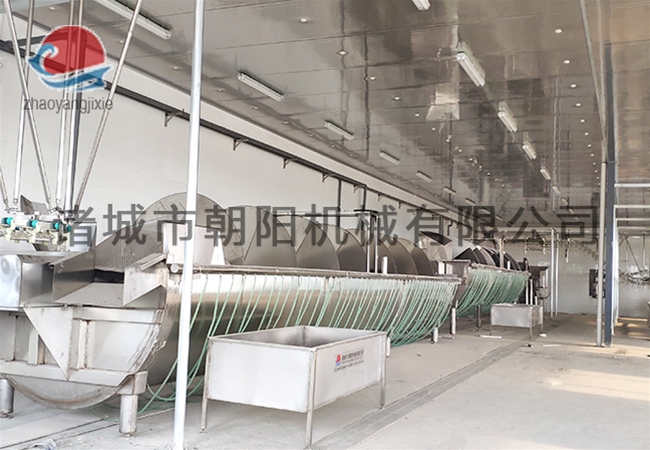 諸城市朝陽機械有限公司是一家集家禽屠宰設備、家禽屠宰流水線研發(fā)生產(chǎn)和設計銷售于一體的生產(chǎn)制造商。公司具有較完善的設計、研發(fā)、檢測和售后體系,并且具有雄厚的技術力量,進步的工藝設計水平、屠宰設備和安裝水平,是國內(nèi)家禽屠宰機械行業(yè)代表性企業(yè)。公司長期與國內(nèi)外屠宰加工企業(yè)合作,走引進——消化——創(chuàng)新和自主研發(fā)相結合的道路,在國內(nèi)外同類產(chǎn)品的基礎上,不斷更新和改造。公司主要設備有:A字型立式脫毛機、臥式脫毛機、強力噴淋機、松毛機、浸燙池、螺旋預冷機、禽籠清洗機、電暈機、兔扯皮機、兔割前爪/后爪機、剝胗機、自動洗鉤機、螺旋燙爪機、雞爪脫皮機、分割輸送帶等屠宰用設備。其中,公司獨力發(fā)明生產(chǎn)設計的“電動調(diào)節(jié)脫毛機”及“自動控水控溫浸燙池”順利通過知識產(chǎn)權局的實質(zhì)性審查。公司所生產(chǎn)的設備性能達到國際同類產(chǎn)品水平,處于國內(nèi)超前地位,可與國外同類產(chǎn)品配套使用,設備遠銷阿爾及利亞、澳大利亞等中東、非州等并建立了長期穩(wěn)定的合作關系。
